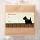 Perro negro escocés de terror con Navidades de cuello holly con patrón de vacaciones escocés de tartán. Perfecta etiqueta personalizada de regalo de vacaciones para propietarios mascotas y amantes de los animales.