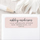 moda de personalizable, etiqueta de dirección de retorno moderna y sencilla con tu nombre en caligrafía de escritura a mano elegante y fuera de negro sobre un fondo rosa pastel. Simplemente agrega tu nombre y dirección. Diseñado exclusivamente para usted por Happy Dolphin Studio. Si necesita ayuda o productos coincidentes, por favor contáctenos en happydolphinstudio@outlook.com.