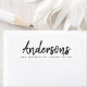 un tipo de letra negrita con letras a mano para el nombre de su familia, acompañado de un gris oscuro contemporáneo y toda la dirección en mayúsculas. ¡un estilo maravilloso para adornar su correo saliente, ya sea para una ocasión especial o para embellecer cada día! ¡introduzca su información y vea lo grandioso que se ve! ¡gracias por sus compras y disfrute de un gran día!