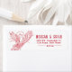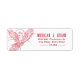 Una etiqueta de dirección única para complementar la suite boda dragón y fénix. Esta versión presenta un ilustracion de contorno rojo de un fénix contra un fondo blanco. Además esta es tu información única en rojo.