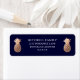Estos elegantes rótulos de direcciones de retorno cuentan con dos finas piñas rosas tropicales de oro sobre un fondo azul marino oscuro para un aspecto moderno y clásico.