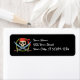 Esta etiqueta pirata presenta un cráneo tridimensional con espadas cruzadas. Se puede usar como etiqueta de una placa, etiqueta de dirección y más.
