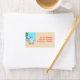 Etiqueta de dirección de 2"l x 3.75"w toe para que coincida con nuestra invitación a la "playa tropical" con una imagen de una escena de playa con un paraguas, una silla, frondas de palmeras y una velera en el océano. Vea la etiqueta de invitación y regalo correspondiente. Ver toda la colección de Pegatinas de Shipwreck en INVITES | Sección Pegatinas y etiquetas.