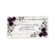 Moderno y de moda, este diseño de la etiqueta de la dirección de retorno presenta la vegetación eucaliptos de color agua y los arreglos florales de ciruelas violetas, con el polvo de oro falso, sobre una textura de mármol blanco falso, con el nombre y la dirección a juego con el color ciruela. Parte de un conjunto de bodas coincidentes. Copyright Elegant Invita. Todos Los Derechos Reservados.