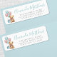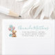 "Podemos esperar" Etiqueta de dirección de devolución de Baby Shower. Esta adorable etiqueta de la dirección de retorno incluye un oso de peluche lindo con un arco rosado, y una caja de regalo azul, con una mezcla de globos acuáticos rosa y azul, colocados en el lado izquierdo. El lado derecho muestra su nombre en un guión azul suave con la dirección en una fuente serif gris clásica. El encantador diseño, con una caja de regalo azul, es perfecto para una ducha de bebé de género neutra o sorpresa. La combinación de fuentes lúdicas y elegantes le aporta un toque dulce, y puede personalizar los colores y el fondo para que coincidan con el tema. Todos los textos, tipos de letra y colores se pueden personalizar para que se ajusten a su estilo de evento.