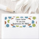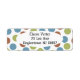 Estas etiquetas de dirección devueltas tienen un diseño geométrico de puntos azules, verdes y marrones.
