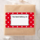 Este libro pertenece a con un patrón de puntos polka rojo y blanco.