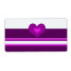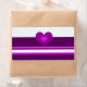 Una etiqueta elegante con un diseño de rayas violetas en un fondo blanco. Un corazón morado a la sombra en el centro.