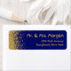 Estas etiquetas de dirección tienen un efecto purpurina de oro en un rico fondo azul real. El estilo de letra, el color y la posición pueden cambiarse de la forma que desee, yendo al menú personalizar. Forma parte de una suite boda que incluye una invitación, un sobre, un menú y muchos otros elementos a juego.
