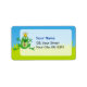 Personalizado de rana príncipe con corona sobre hierba verde bajo el cielo azul. campos de texto personalizado para nombre y dirección.