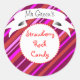 Pegatina de la etiqueta con rayas de caramelo de fresa rosa y roja - personalizar en www.zazzle.co.uk/blubush
