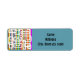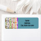 Estas etiquetas de dirección de retorno tienen un diseño moderno de rectángulos a mediados de siglo sobre rayas de colores.