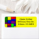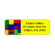 Estas etiquetas de dirección de retorno tienen un diseño Bauhaus de rectángulos divididos en piezas cada vez más pequeñas en rojo, amarillo, azul, verde, morado sobre un campo de negro.