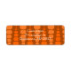 Estas etiquetas de dirección de retorno tienen un diseño moderno de mediados de siglo de rectángulos redondeados en dos tonalidades de naranja que corren verticalmente sobre un campo marrón.