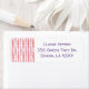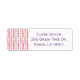 Estas etiquetas de dirección de retorno tienen un diseño moderno de mediados de siglo de rectángulos redondeados rosa y lavanda en aumento y disminución de tamaño corriendo verticalmente sobre un campo de blanco.
