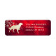 Esta distintiva etiqueta de dirección de retorno presenta una silueta dorada de la imagen de Bretaña frente a un rociado de copos de nieve dorados ornamentados. La imagen se coloca sobre un fondo rojo profundo degradado que parece casi resplandecer. El texto de su personalizado es en oro pálido a la derecha de la imagen. ¡Hermoso!