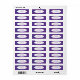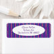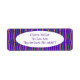 Estas etiquetas de dirección de retorno tienen un diseño geométrico de Mardi Gras de una especie de óvalos de punta plana que se repiten a lo largo del diseño en oro y verde sobre un campo de púrpura.