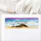 Rocas de playa de acuarela con olas rompientes como fondo para las etiquetas de devolución. Esto se puede utilizar para cualquier ocasión especial. Bodas, fiestas de verano, lo que quieras. Puedes personalizar la fuente y el texto a tu gusto.
