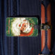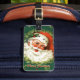 ¡La etiqueta retra del equipaje de Santa es una gran manera de añadir alcohol del día de fiesta a sus viajes del día de fiesta! ¡También hace un gran regalo! El diseño retro en el frente ofrece la cara sonriente de Santa en un fondo verde oscuro. El texto lee, "las Felices Navidad." La parte posterior de la etiqueta del equipaje tiene un diseño rojo de la tela escocesa, con el texto de su opción. Modifique el texto para requisitos particulares en el frente y la parte posterior del diseño según lo deseado. El fondo rojo de la tela escocesa en la parte de atrás de la etiqueta del equipaje es también opcional--usted puede suprimir si está deseado.