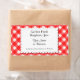 Patrón retro de rayas y rayas rojas y blancas de pegatinas de personalizable en bloques retro y garrapatas letras, en una falsa tontería. Personalizar que cambie las fuentes o el tamaño, agregue campos o cambie los colores de fondo o la forma de etiqueta, incluso guarde el diseño para más adelante.