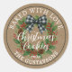 Esta encantadora pegatina de estilo casa de campo rústica presenta una clásica corona de acebo roja y verde, con un lazo de gingham negro y blanco, y el texto "Hecho con amor" y "Galletas de Navidad". Es perfecta para decorar tus galletas de vainilla caseras, brownies, galletas de azúcar, shortbread y otros dulces festivos. El diseño clásico añade un atractivo atemporal, y puedes personalizar la pegatina con el nombre del que hace las galletas para darle un toque personal. Estas pegatinas darán a tus proyectos de repostería un aspecto único y profesional.