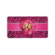 Etiqueta Rosa rosada de leopardo rosa monograma