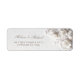 Estas etiquetas de boda presentan flores de rosas blancas 3D sobre un fondo blanco.