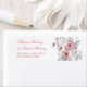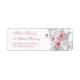 Estas etiquetas de boda presentan rosas rosadas y hojas de papel gris cortado sobre un fondo blanco y una elegante tipografía caligráfica vintage.