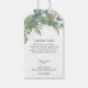 Haga que su evento sea memorable con esta etiqueta de agradecimiento rústica y elegante, con eucalipto y hojas de color laurel y agua acentuadas con un toque purpurina dorado. Los elementos coincidentes están disponibles para este tema.