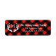 Etiquetas de dirección de moda rústica con una silueta de corderos de campanario blanco que rodea la letra monográfica de su familia en blanco. El fondo es la impresión de la marca de verificación de búfalo en negrita.