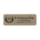 Etiquetas de dirección de moda de casa de campo con una silueta de corderos de renos de color negro que rodea la carta monográfica de su familia en negro. El fondo es una imitación de una huella de toronja.