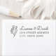 Las etiquetas de las direcciones de los bodas diseñadas por los personalizados presentan flores rústicas de estilo a mano con nombres de pareja y dirección personalizados.