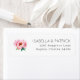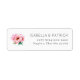 This return address label features a minimalist design with a soft watercolor illustration of pink peonies on the left, creating an elegant and serene aesthetic. The layout is clean and balanced, with ample white space enhancing the simplicity. On the right side, modern sans-serif typography presents customizable text in a centered alignment, making it perfect for personalization. The color palette includes gentle pinks and greens against a crisp white background, evoking a refined and inviting mood ideal for formal occasions.