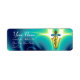 Etiqueta SÍMBOLO VETERINARIO CADUCEO DE ORO, azul acuático,