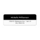 Sencillo, sencillo, clásico o moderno, y personalizado con su nombre, o personalizar con el nombre de su empresa. El área está dividida con un amplio borde de rayas negras en la parte superior y un borde de bloques blancos debajo. El texto se invierte en blanco sobre negro y negro sobre blanco en cada área. Cualquier tamaño de texto puede cambiarse si es necesario para ajustarse. Hay que destacar que está diseñado para el estilo de un producto pequeño. Otras opciones de selección de productos pueden alterar la colocación de las franjas o el texto, por lo que se recomienda antes de comprar.