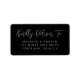 Elegante etiqueta de dirección RSVP de boda con letras blancas con fondo negro. Personalice las etiquetas de dirección rsvp simples con sus nombres y dirección. Diseñado para coordinar con nuestra colección de bodas de script simple.