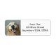 Estas etiquetas de dirección de retorno incluyen una fotografía de cierre de un feliz perro recuperador de oro, en un fondo gris.