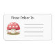 Etiqueta de la dirección "Please Deliver to" (Por favor, entrega a) de la seta sonriente roja y blanca.