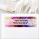 El fondo es un diseño abstracto que tiene un aspecto de cristal brillante. Muchos arcos afilados y bordes puntiagudos le dan un aire moderno y fresco. La combinación de tonos violeta y rosa crea un ambiente muy animado. Una pancarta con un overlay transparente y un borde dorado se extiende a lo largo del centro para que puedas escribir fácilmente tu nombre y dirección.