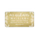 La etiqueta de vacaciones de los navidades incluye al Sr. y a la Sra. con la dirección de retorno del personalizado. El follaje moderno de pino con bayas enmarca el texto. El fondo de color dorado está impreso digitalmente con un elegante aspecto de Relieve metalizado en oro falso.