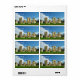 Una pintura digital de Stonehenge durante el verano, con el cielo azul y las nubes blancas.