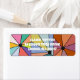 Estas etiquetas de dirección de retorno tienen un diseño abstracto hecho de nueve cuadrados con un círculo y "rayos" saliendo del círculo en muchos colores diferentes.