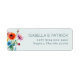 Esta etiqueta de dirección de devolución presenta un diseño minimalista con un fondo blanco limpio, creando un aspecto elegante y moderno. El lado izquierdo muestra una ilustración de acuarela de flores vibrantes en un frasco de vidrio, incluyendo amapolas naranjas, peonías rosadas, margaritas azules y capullos rojos, añadiendo un toque de fantasía y color. A la derecha, una tipografía serif en negrita presenta texto personalizable para nombres y direcciones, asegurando claridad y sofisticación. El ambiente general es alegre y celebratorio, perfecto para personalizar sobres para ocasiones especiales o correo diario.