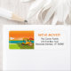 This festive return address label features a Thanksgiving golf cart loaded with moving boxes and a cheerful turkey carrying the all-important kitchen box. A playful and unique way for golf lovers to share their new address during the holiday season.