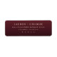 Esta etiqueta de dirección de devolución presenta un diseño sofisticado y minimalista con un fondo de color burdeos profundo y texto de color crema suave. La disposición es limpia y centrada, utilizando tipografía serif elegante para un aspecto atemporal. Perfecto para eventos formales o invitaciones, el diseño enfatiza la claridad y la refinación, lo que lo hace ideal para aquellos que buscan una estética clásica y moderna.