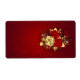 La composición de dos rosas rojas pintadas artistalmente y un rosa dorado, decorado con oro, hojas de joyas sobre fondo texturado.