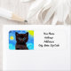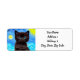 ¡Regresa las etiquetas de dirección con un gato negro en la pintura Starry Night de Van Gogh! Este gatito de ojos azules mira adorablemente desde un fondo de remolinos azules y una brillante luna amarilla. ¡Un regalo fantástico para los amantes del gato y para los coleccionistas holandeses de arte!