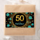 Etiquetas de botellas de agua de 50 años de la mujer con estallido de bonito negro y oro y números de oro en un hermoso fondo azul verde azulado negro y oro. Puede agregar el texto de su elección para personalizar estas etiquetas de botellas de agua de bonito. También puede cambiar el color de fondo. No son prueba de agua.