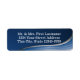 Las etiquetas de la dirección de vuelta de la ola azul acústica complementan nuestras invitaciones.