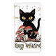 Etiqueta Whimsical noir cat framed by red mushrooms and pal